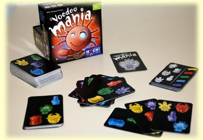 Brrr! Mir läuft ein kalter Schauer über den Rücken. Die Voodoo-Puppe auf dem Cover des neuesten Spiels von Huch! & friends sieht aber auch wirklich gruselig aus. Mit leblosen weißen Knopfaugen, der genähte Mund zu einem hämischen Grinsen verzogen, der Stoffkörper mit spitzen Nadeln gespickt. Dabei ist das Spiel selbst nicht zum Fürchten. Zwar steigt bei einer Partie Voodoo Mania auch der Puls, das Adrenalin schießt in die Adern, und der Schweiß bricht aus. Der Grund dafür sind aber nicht blanke Furcht und Todesangst, sondern vielmehr Hektik und Stress ...