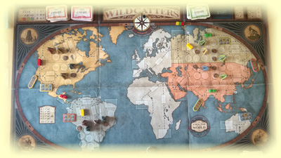 Wildcatters spielen wir auf einer Weltkarte, auf der die wichtigsten Fördergebiete der Erde dargestellt sind. Diese werden über Eisenbahnlinien mit Häfen und - noch zu errichtenden - Raffinerien auf der ganzen Welt verbunden. Jeder Spieler repräsentiert eine Aktiengesellschaft, die mit verschiedensten Investitionen versucht, möglichst viel Öl zu fördern und zu exportieren.