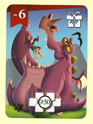 Witzig sind auch die Drachen, von denen es drei im Spiel gibt. Erwirbt man einen solchen, "schenkt" man ihn einem Mitspieler, der damit am Spielende Minuspunkte bekommt.