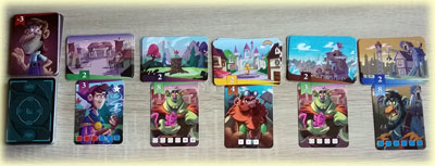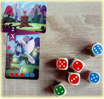 Die Karten sind sehr abwechslungsreich. Schwierige Karten bringen natürlich viele Punkte, während einfache nur wenige bringen. Der Magier bringt einem noch die rechts von ihm liegende Karte dazu, bei manchen Karten darf man ein viertes Mal würfeln oder bekommt noch einmal einen kompletten Zug. Neben den üblichen Poker-/Kniffelbedingungen wie Straße, Full House usw. sind manchmal nur gerade oder ungerade Zahlen verlangt oder das Erreichen oder Unterschreiten einer bestimmten Augensumme.