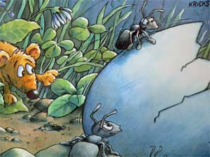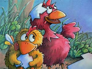 Abgesehen von der Tatsache, dass hier zwei Küken aus einem Ei schlüpfen, Zwillingsküken sozusagen, ist an dieser Geschichte wohl nichts Besonderes. Eine nette Geschichte zwar, aber davon gibt es ja (Gott sei Dank – vielleicht hilft es ja, dass nicht alle unsere Kinder zu Analphabeten mutieren!) mittlerweile schon sehr viele.
