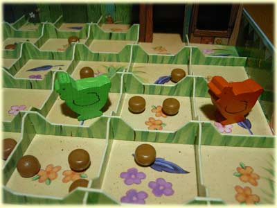Beim Ziehen ist darauf zu achten, dass das Huhn nicht diagonal bewegt werden und auf keinem besetzten Feld landen darf. Zieht man über bzw. landet auf Feldern mit Körnern, darf man das Futter einsammeln und zum eigenen Vorrat legen.