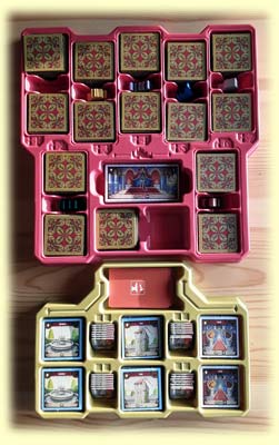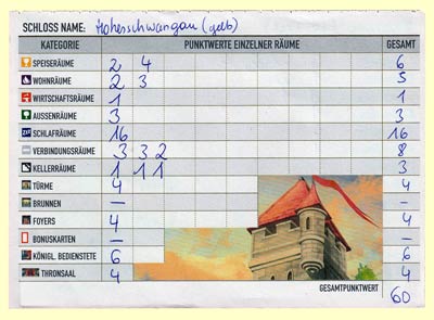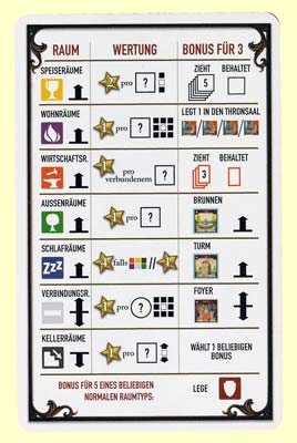 10.11.21 von Der Fisch - Die allermeisten Spiele lassen sich doch so einteilen: entweder spielen wir Solo gegen die anderen, versuchen sie auszustechen, zu optimieren oder zumindest am Ende als der oder die beste dazustehen. Oder aber alle spielen gemeinsam, kooperativ und mit dem Ziel, gegen ein imaginäres "Gegenüber" zu gewinnen. Zwischen zwei Schlössern geht in vielerlei Hinsicht einen anderen Weg und ist dabei erfrischend innovativ. Das beginnt bei dem hochwertigen Spielmaterial, geht über die Umsetzung der Idee bis hin zur Möglichkeit mit Gruppen bis zu 7 Personen (Erweiterung 8) zu spielen. Dabei bauwerkeln wir immer mit unseren beiden NachbarInnen und versuchen jeweils über das Legen von Räumen das Schloss mit den meisten Punkten zu erbauen. Dabei muss auf gegenseitige Effekte ebenso geachtet werden wie auf die Anzahl bestimmter Räume, Boni und nicht zuletzt darauf, dass beide Schlösser ähnlich viele Punkte abräumen. Denn der Clou: am Ende zählt das schlechtere der beiden Schlösser. Dieser Semi-Kooperative Ansatz macht Spaß und sorgt dafür, dass auch weniger erfahrene Spielerinnen und Spieler oder diejenigen, die das Spiel noch nicht (gut) kennen ausgeglichen zum Zug kommen. Abzüge gibt es für zweierlei: die Gestaltung der einzelnen Räume ist zwar super aber alles andere als übersichtlich. Und die abschließende Wertung wirkt so, als hätte man sie irgendwie eleganter lösen können. Was wir aber nicht bestätigen können (das war anderswo zu lesen oder zu hören): die Auswertung dauert nicht ewig und macht je nachdem sogar Spaß. Alles in allem sein geniales Spiel! |